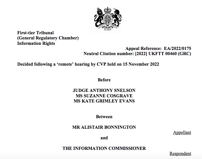 See: O’Mara v Information Commissioner [2023] UKFTT 381 (GRC) (19 April 2023)